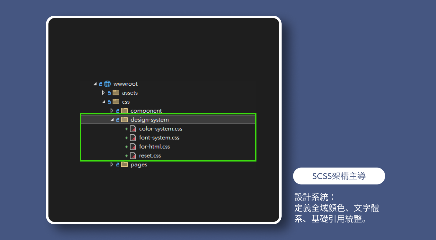 避免多人維護常見的「視覺偏移 (Visual Drift)」與樣式衝突,我建立了嚴謹的分層管理機制--